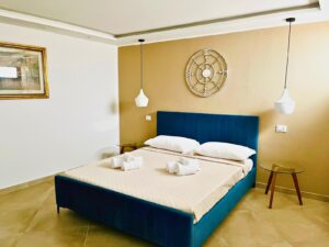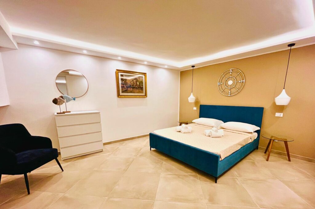 Zona notte accogliente e camere collegate con comodi ambienti eterni vista mare.