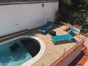 In posizione rialzata e panoramica, è presente una deliziosa piscina, ad uso esclusivo, con zona prendisole e doccia esterna dotata di acqua calda, per momenti di puro relax.
